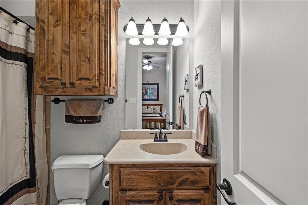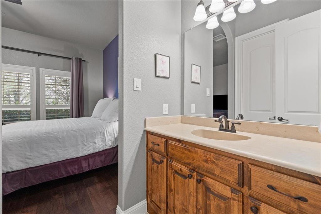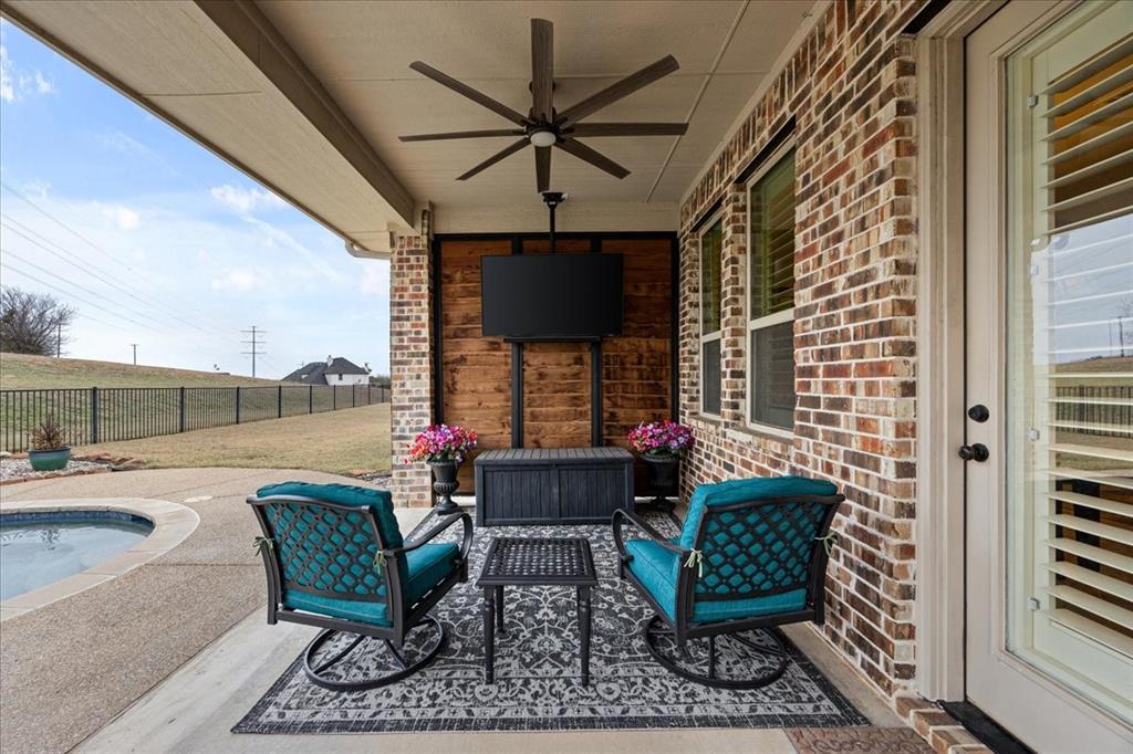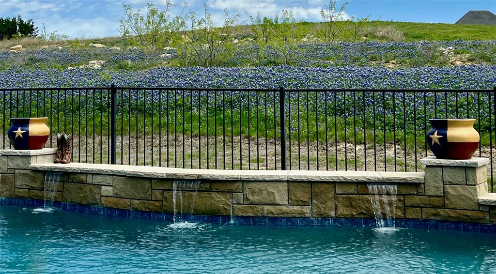 Welcome to this beautiful 4-bedroom home in the highly sought-after, guarded Bella Flora community. Nestled on over an acre with amazing sunset views and spectacular springtime bluebonnets, this property blends privacy, luxury, and everyday comfort—designed with easy entertaining in mind. Step inside to a spacious living room with warm wood floors, plantation shutters, which are also throughout the home, and a gas fireplace. The open floor plan flows seamlessly into the large kitchen, featuring granite countertops, abundant storage, a butler’s pantry, and a generous breakfast nook. A formal dining room offers the perfect setting for hosting, while a second living area with French Doors provides flexible space ideal for an office, playroom, home gym, or media room. The retreat-like oversized primary suite is a haven of relaxation with a stunning ensuite bath showcasing dual vanities, a separate shower, and a large walk-in closet. Guests will appreciate the private ensuite bedroom, while two additional bedrooms share a convenient Jack-and-Jill bath. Step outside to your backyard oasis, complete with a covered patio, outdoor living and dining area with built in grill, and a sparkling pool added in 2022. With thoughtful upgrades throughout, this home offers the perfect blend of elegance and functionality in one of Fort Worth's premier gated communities. Loads of upgrades including: new HVACs in 2024, whole house generator, wood floors in living spaces (no carpet), and many more. See documents for more detail.